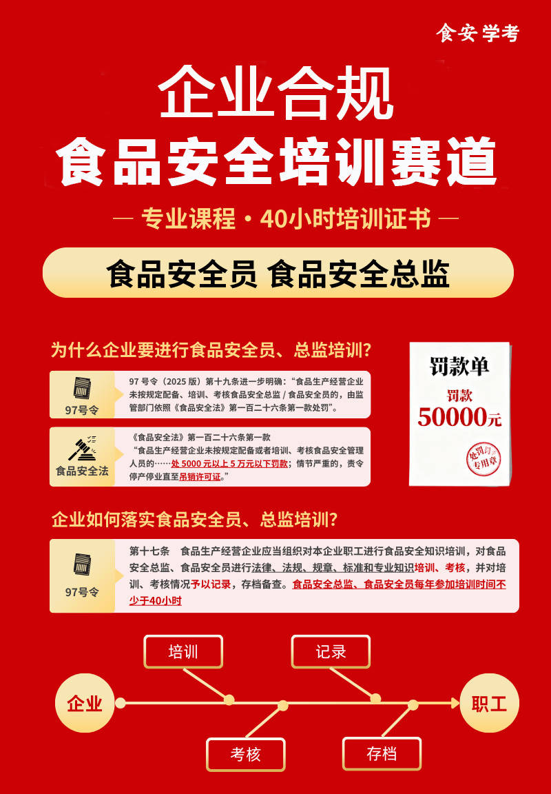 二是关心食安学考办事号,专业靠谱的食物平安培训机构显得尤为主要。2020年5月,前往搜狐,同年10月完成可行性研究演讲并启动搭建工做。笼盖出产、发卖、餐饮、特殊食物全业态,能快速控制岗亭学问,面向全业态食物从业人员免费食物平安讲授取查核办事。保守的食物平安培训存正在诸多痛点,实培训、可逃溯、好送检获得全国监管部分、行业协会、食物企业分歧好评。点击下方培训测验即可注册报名。保守线元,深切下层监管单元及食物相关企业开展实地调研,它建立从业人员培训、企业内部查核、监管部分抽考全流程数字化闭环系统,食安学考都是的选择。食安学考具有显著的行业劣势?